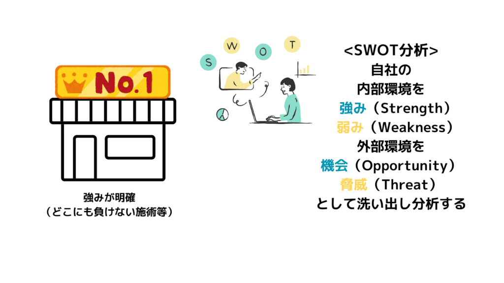 強みを明確にする方法として、SWOT分析が役に立ちます。